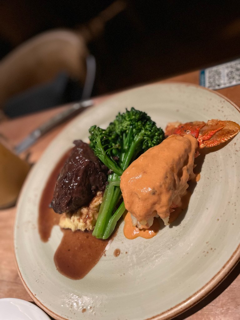 To sum up this dining experience I would say I was disappointed. Maybe my selection was off for the night, I could have ordered something else. Nonetheless, my Surf and Turf was like a one note song, that lacked melody and tempo. The entire meal was just heavy. The beef was braised in the oven, so it wasn’t cooked to a preferred temperature. I also did’t like the cut of beef used at all. I don’t know the particular cut but it had a gelatinous part that ran through it and I didn’t like the texture of it at all. All the sauces on the plate were creamy or heavy in flavor and the same went for the mash that accompanied the protein. I didn’t finish the meal.